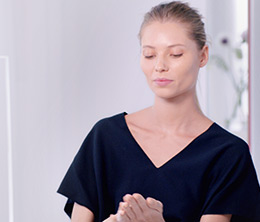 Dejar actuar con el peso natural de las manos sobre el rostro y el cuello para crear una sensación de bienestar inmediata y repartir el tratamiento uniformemente.